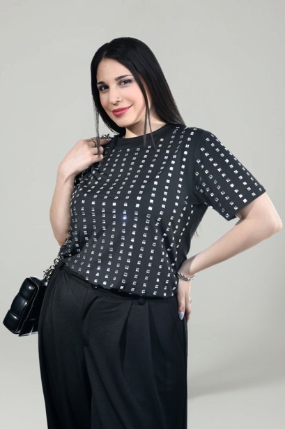 73000 – Remera c/Vidrio – Viscosa Elastizada Strass Pegado