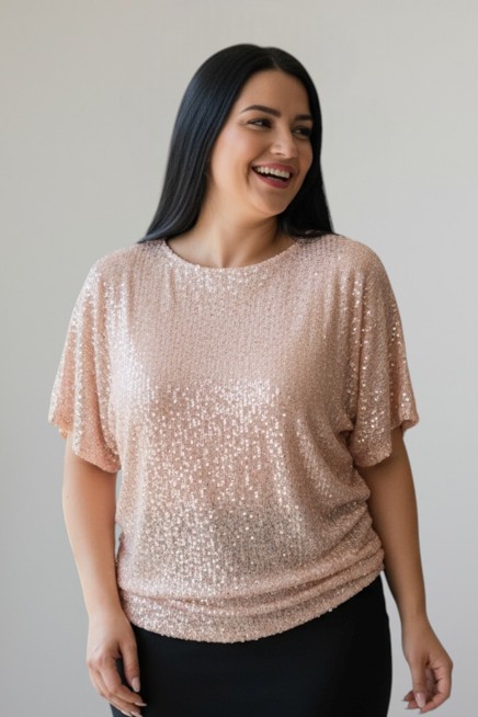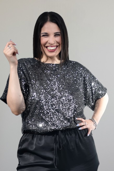 73017 – Remera Fiesta – Blusa de Lentejuelas con Forro