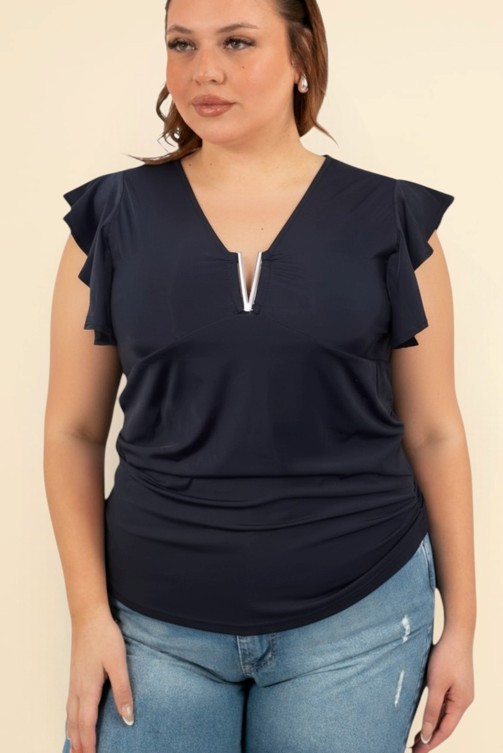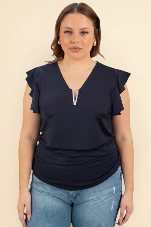 73023 – Remera Cuello V c/Volados – Viscosa Elastizada