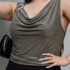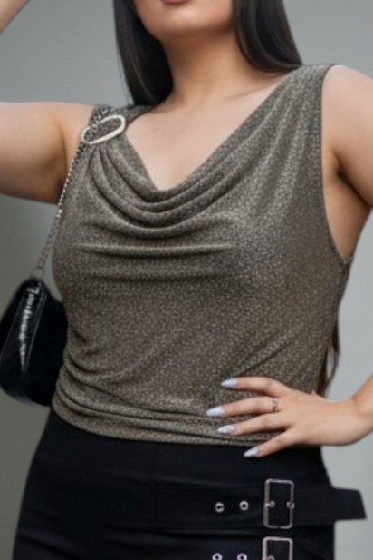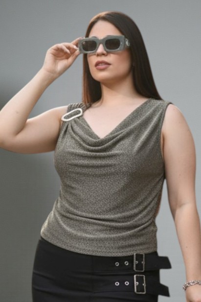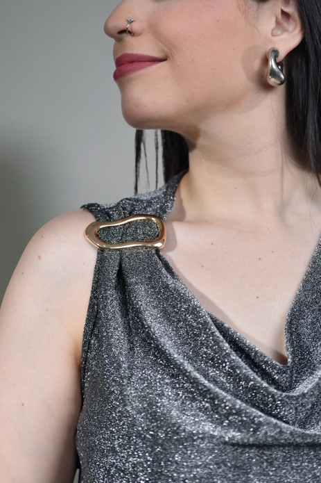 73025 – Musculosa Lurex – Elastizada con Hebilla en un Hombro