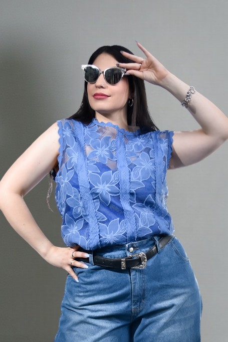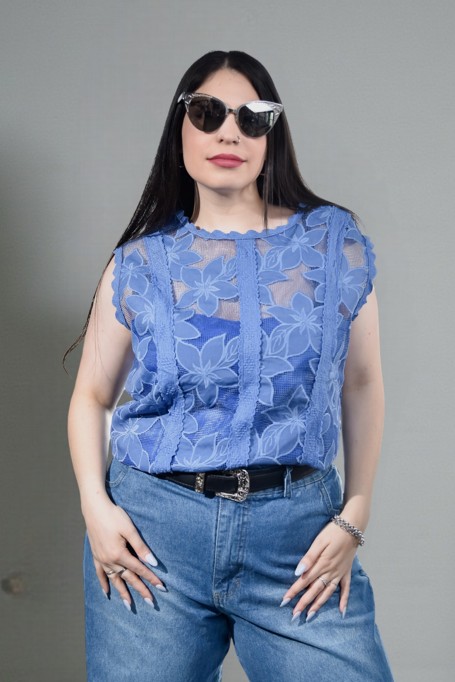73027 – Musculosa c/Blanda – Red Bordada c/Flores Rigida Espalda c/Cierre Metalico y Forro